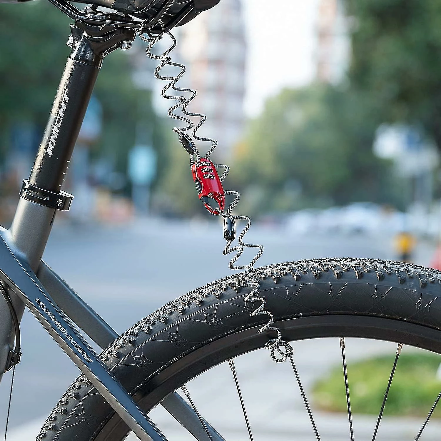 RESET AND CONVENIENCE: Use code lock instead of key, no need to worry about lost/remember to unlock with key. Easy to use, set a password. SMALL AND LIGHTWEIGHT: It is small and can fit in the pocket of a cycling jersey or backpack. ALLOY LOCK BODY: The bicycle lock body is made of zinc alloy, and the outer PVC material is wrapped to prevent scratches on the bicycle frame, wear-resistant and durable. ELASTICITY AND FLEXIBILITY: The helmet lock can be stretched to 90cm, which is very suitable for locking the helmet on locked bicycles, motorcycles or luggage. SAFE AND DURABLE The lock body is made of zinc alloy , wrapped PVC outer material to prevent scratches on the bike frame, wear-resistant and durable. ELASTIC LOCK BODY The lock body is elastic. Suitable for most bags, bags backpacks, travel bags, snowboards, strollers, helmets, etc. Specification: Material: Zinc alloy Color red Size: 90cm (extendable) Quantity delivered: 1 piece ON Step 1: Set 000 to unlock. Step 2: Press the bottom button and hold it firmly.Step 3: Hold the button below and set the new password with another hand.Step 4: Release the button below and password setup is complete.